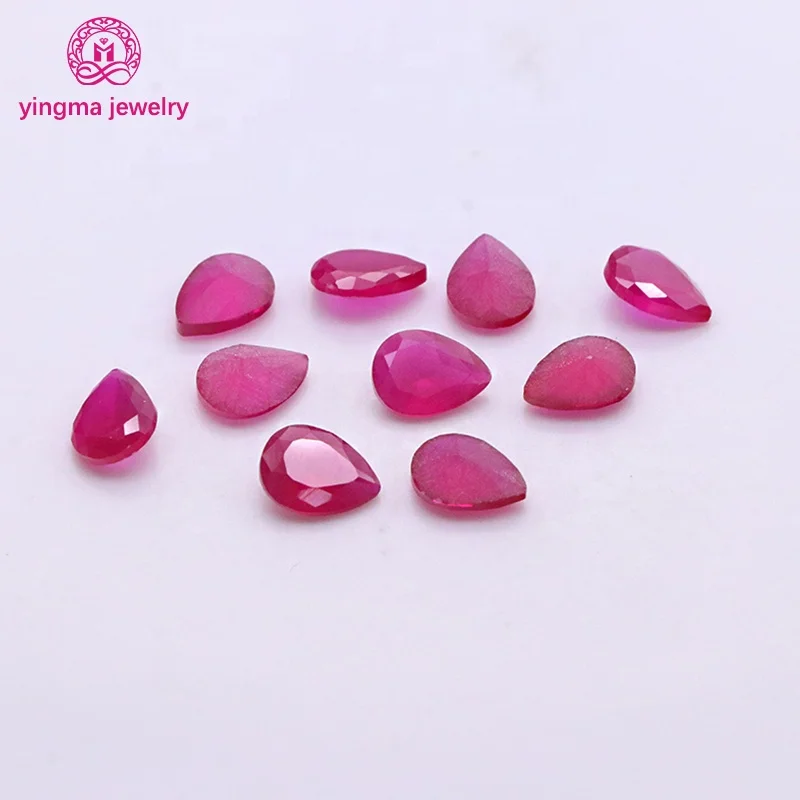 Лабораторный драгоценный камень песчаный корунд в форме груши 3x4 мм до 8x10 синтетический 5 # красный рубин рыхлые корундовые камни