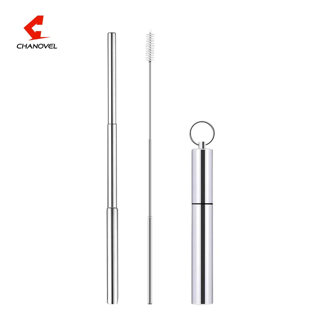 Телескопическая складная соломинка из нержавеющей стали для питья пива и кофе с футляром и щеткой