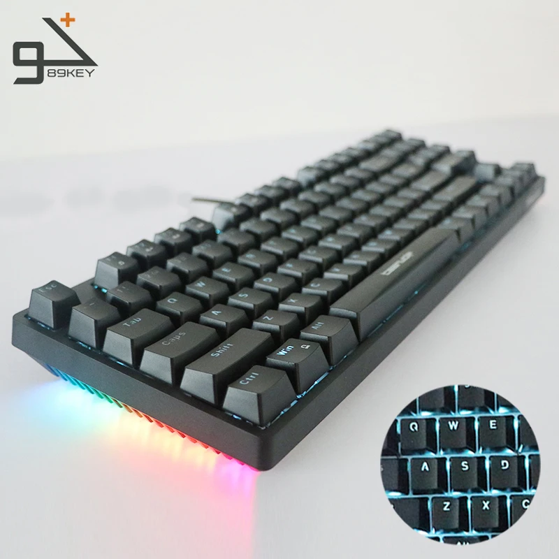 High Quality OEM Hotswap RGB LED backlit multimedia functions 89 keys USB Wired Mechanical Gaming Keyboard