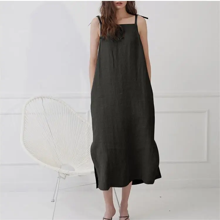 Женское однотонное платье-трапециевидная 100% с квадратным вырезом и карманами