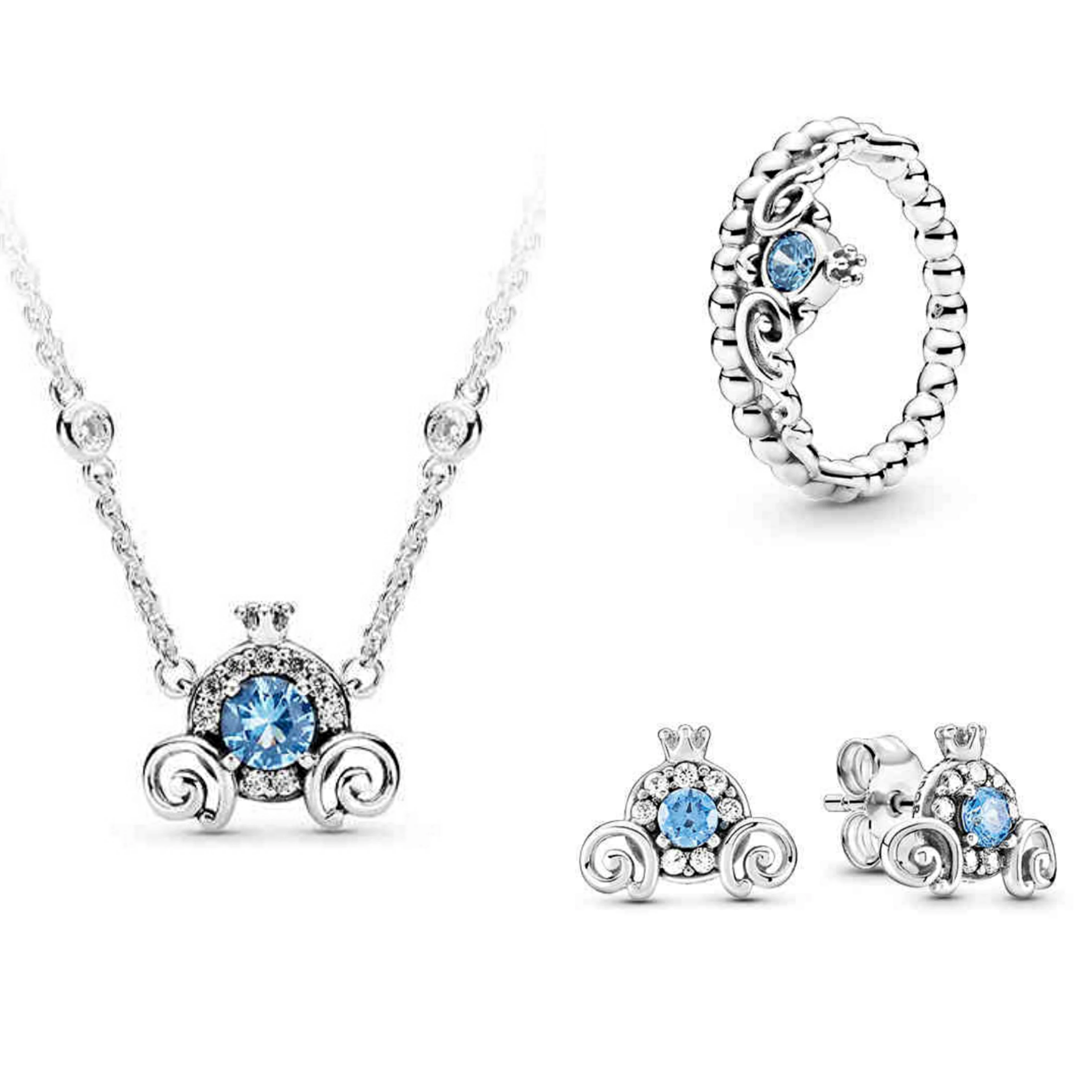 Платье Золушки с синей короной кольцо ожерелье серьги браслет набор для pandora съемки посвященной дню Святого Валентина для женщин, ювелирное изделие, подарок