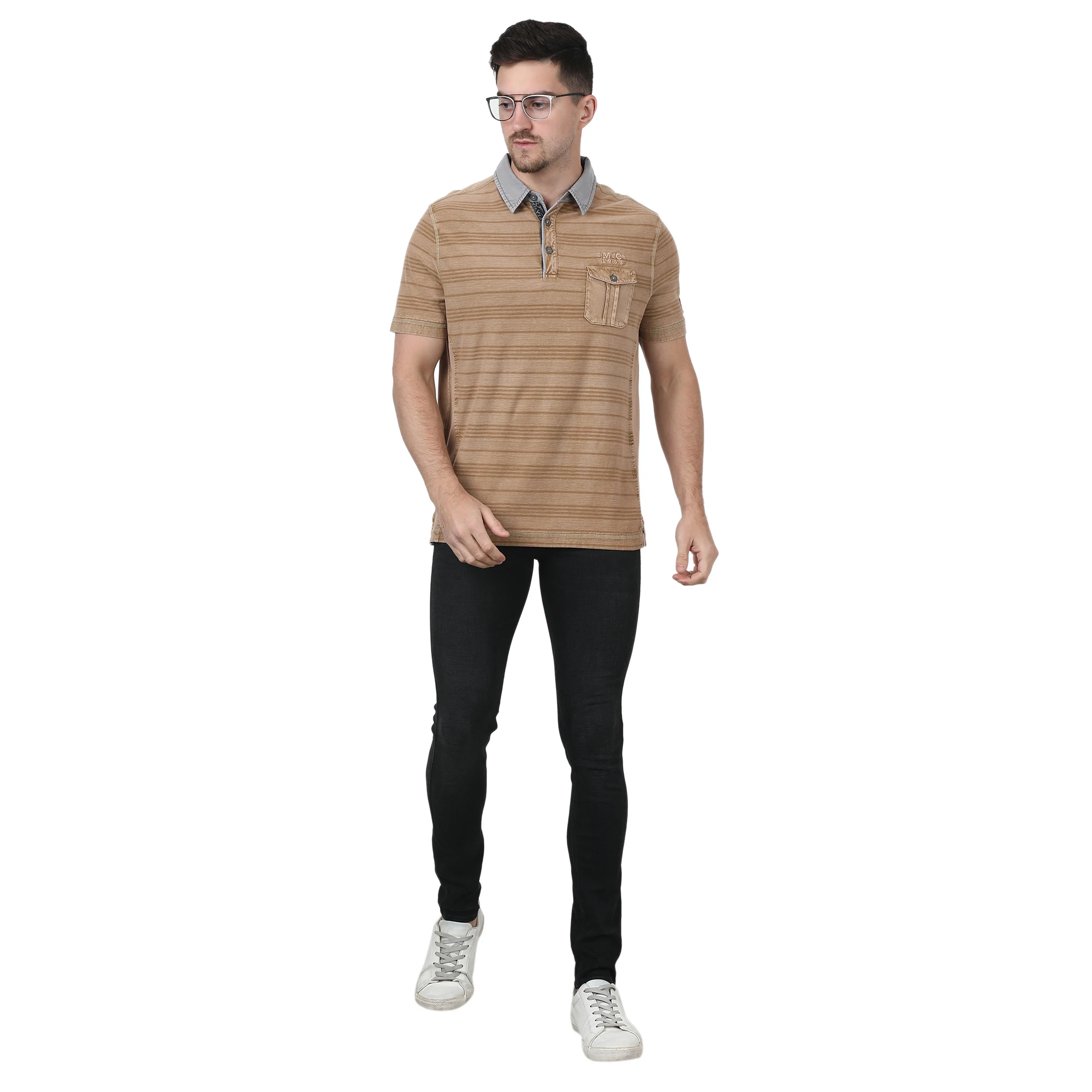 Мужская Трикотажная футболка в полоску с коротким рукавом и воротником-поло
