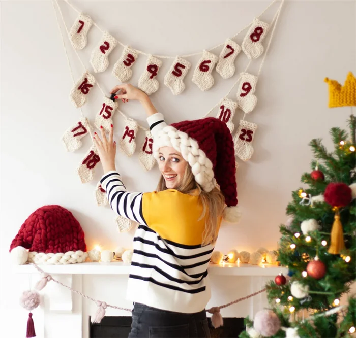 S8985 оптовая продажа 2023 набор украшений календарь для Адвента сделайте собственное украшение вязаные носки Рождественская гирлянда торговых центров
