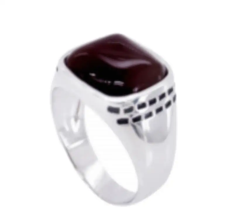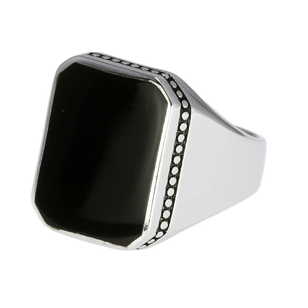 Мужская 925 Обручальное кольцо из стерлингового серебра оптовая продажа с фабрики полированные черные квадратные плоские гелевые камни Стильные средние