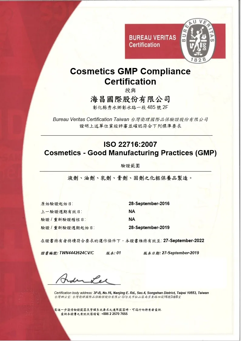 Certification | SGS,ISO 22716 : 2007 |
