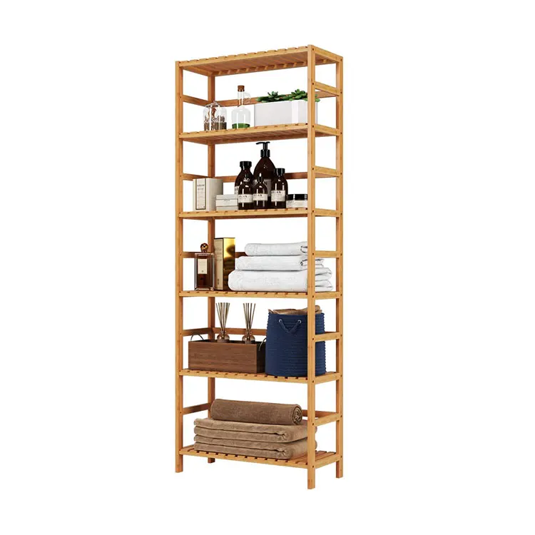Бамбуковая полка, 6 ярусов, 63,4 дюймов, высота, отдельно стоящая, книжная полка, растительная Цветочная стойка, стойка для ванной комнаты, башня для хранения