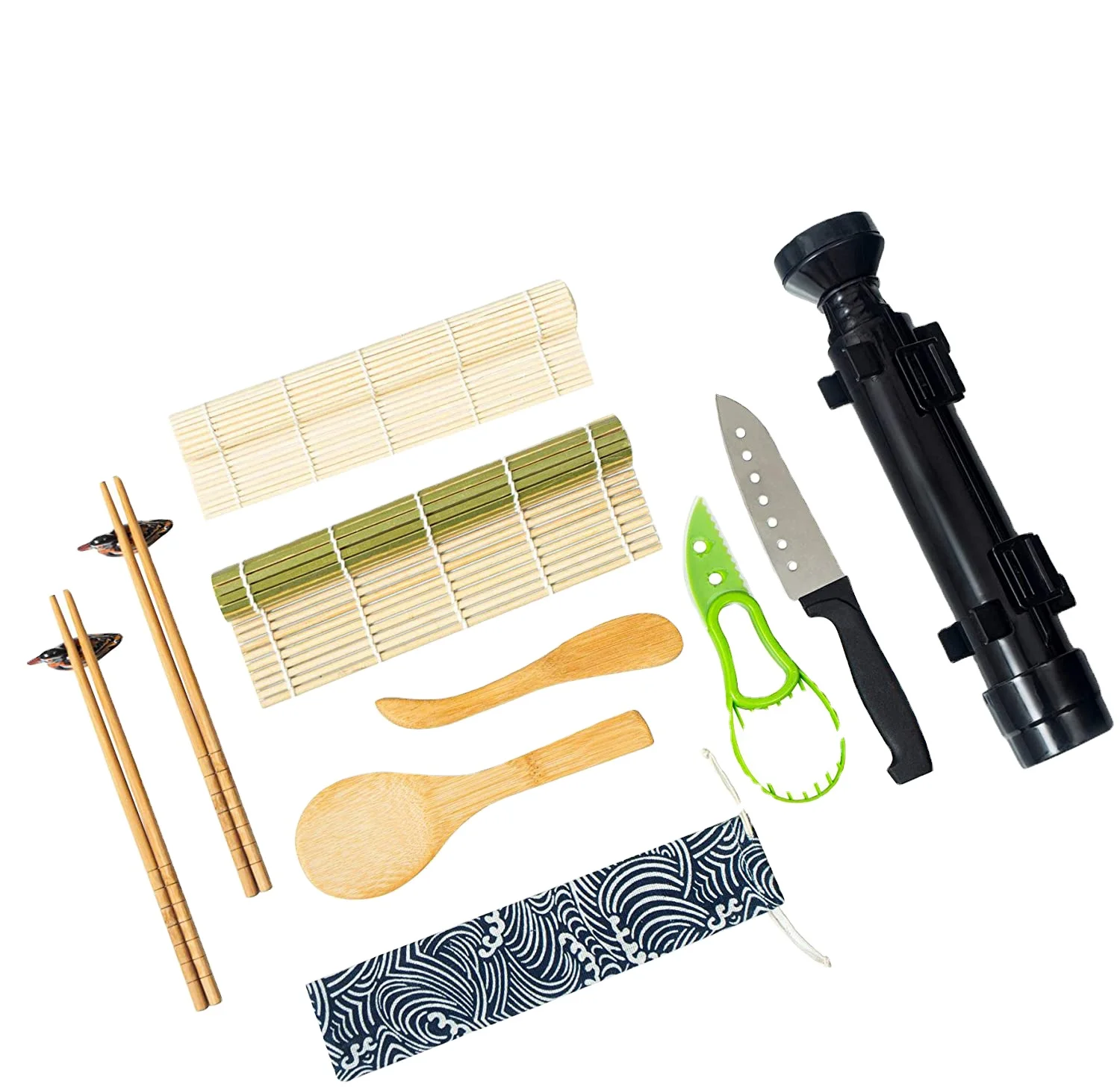 Factory Direct Supply Natural Color 12 in 1 Bamboo Sushi Mat Sushi Making Kit With Colorful Package