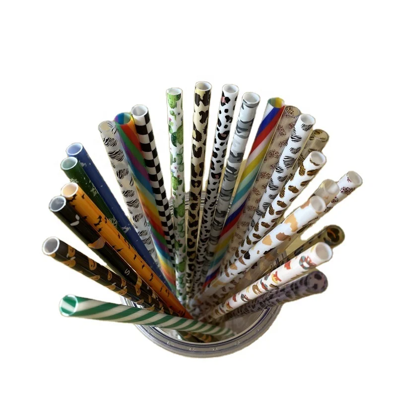 Пластиковые соломинки с принтом животных леопардов фруктов тортов подсолнухов коров многоразовые