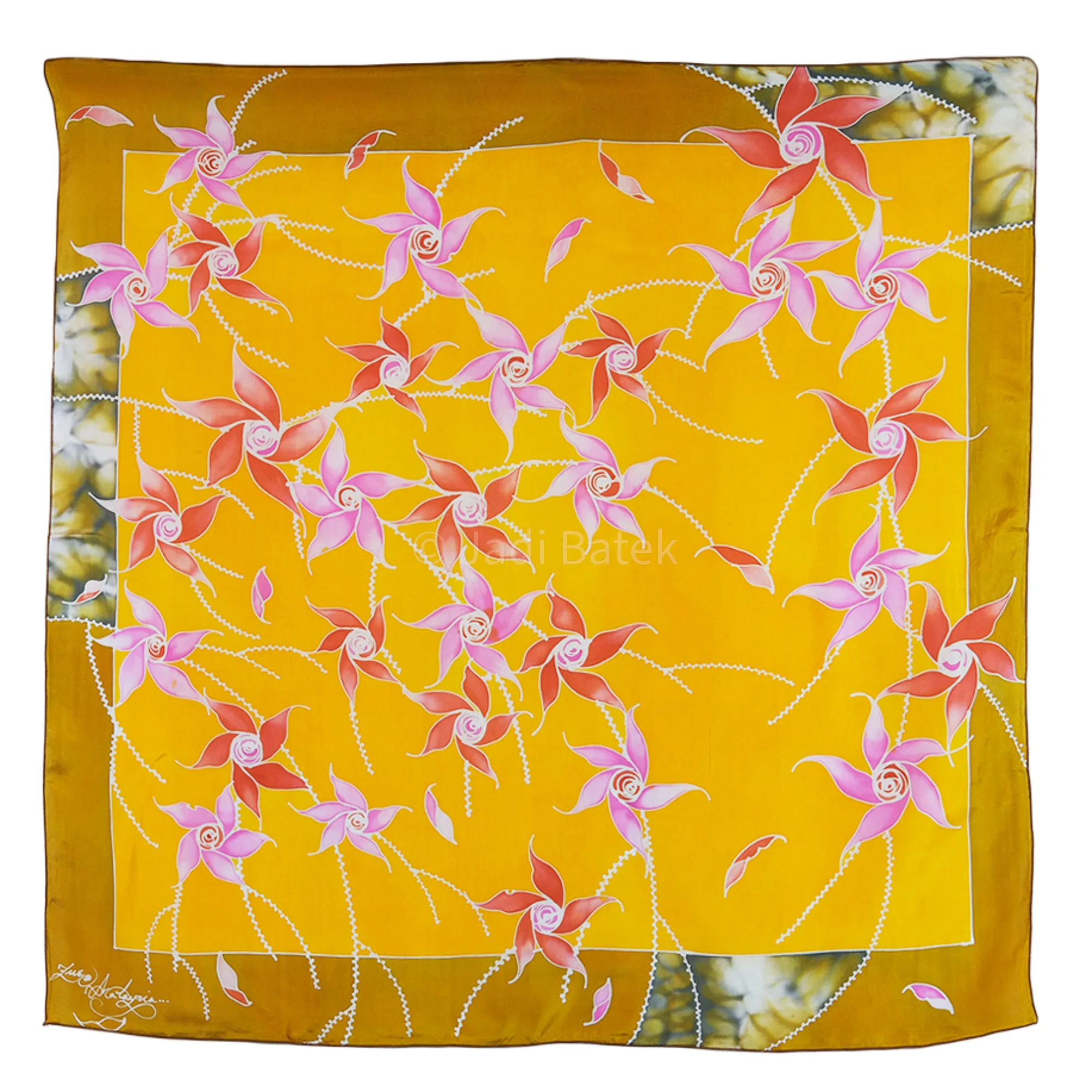 Желтый Малайзийский Шелковый квадратный шарф ручной работы batik