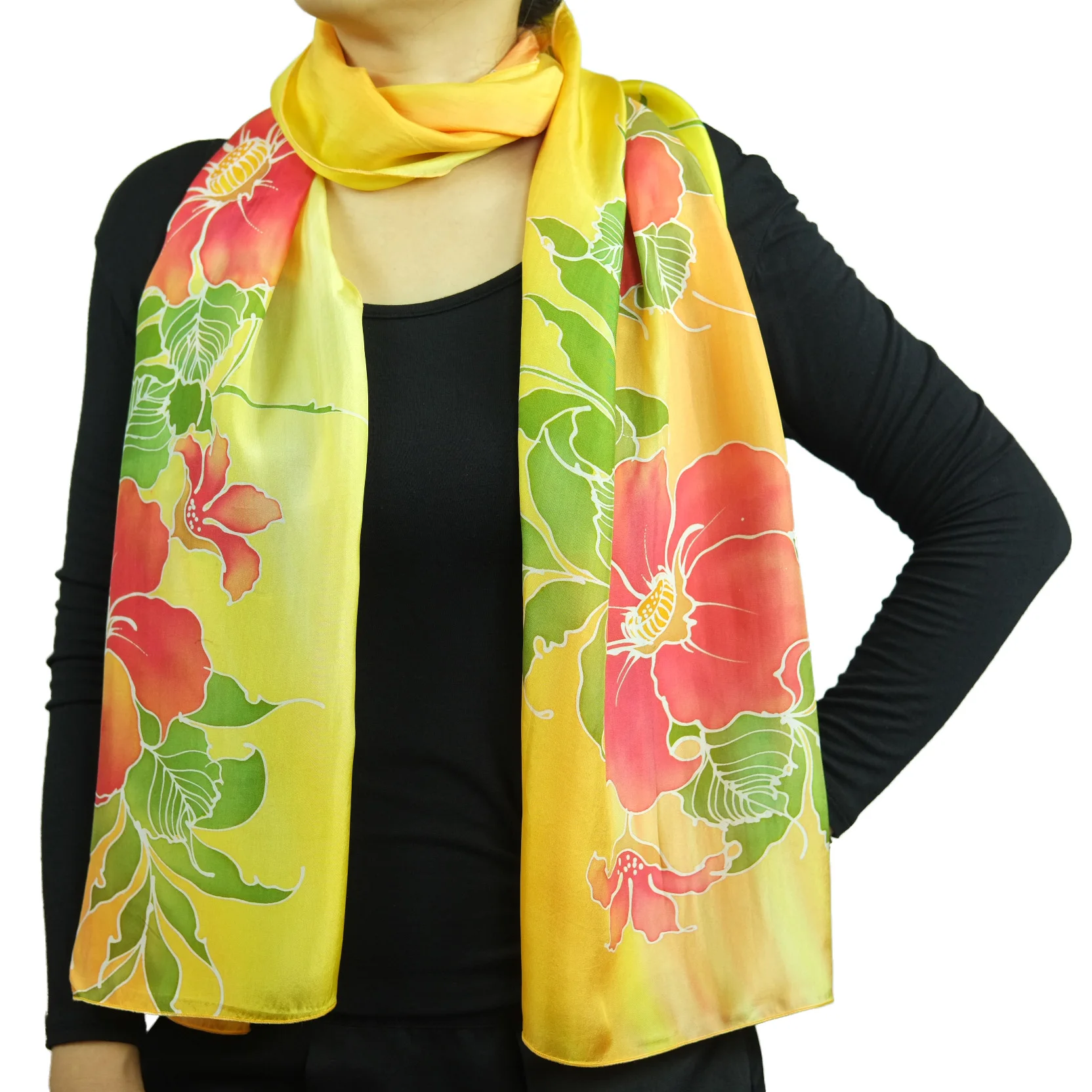 Желтый Малайзийский шелковый длинный шарф ручной работы batik