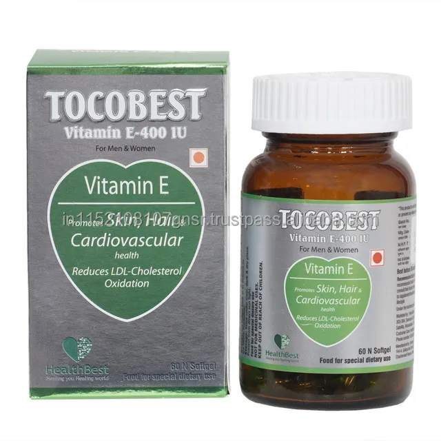 HealthBest TocoBest, витамин E 400 IU, капсулы мягкого геля, здоровая кожа, волосы, лицо и глаза, антиоксидант, 60 капсул