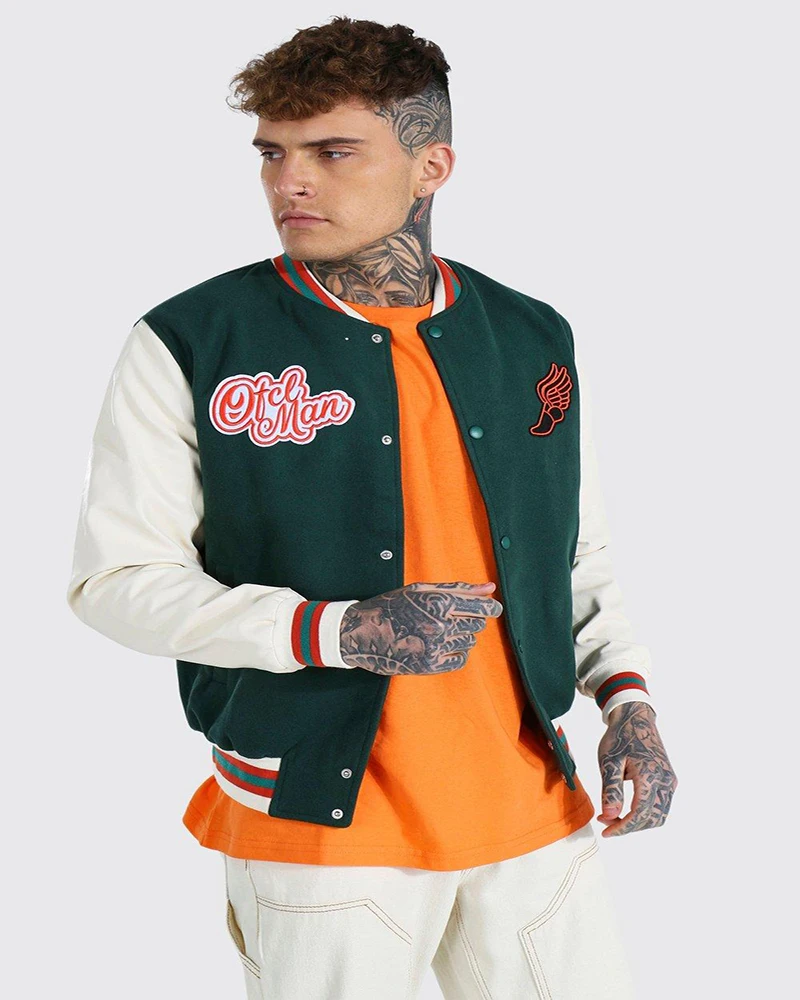 Wholesale Custom Embroidered Chenille Patches Leather Sleeves Baseball College Varsity Jacket
