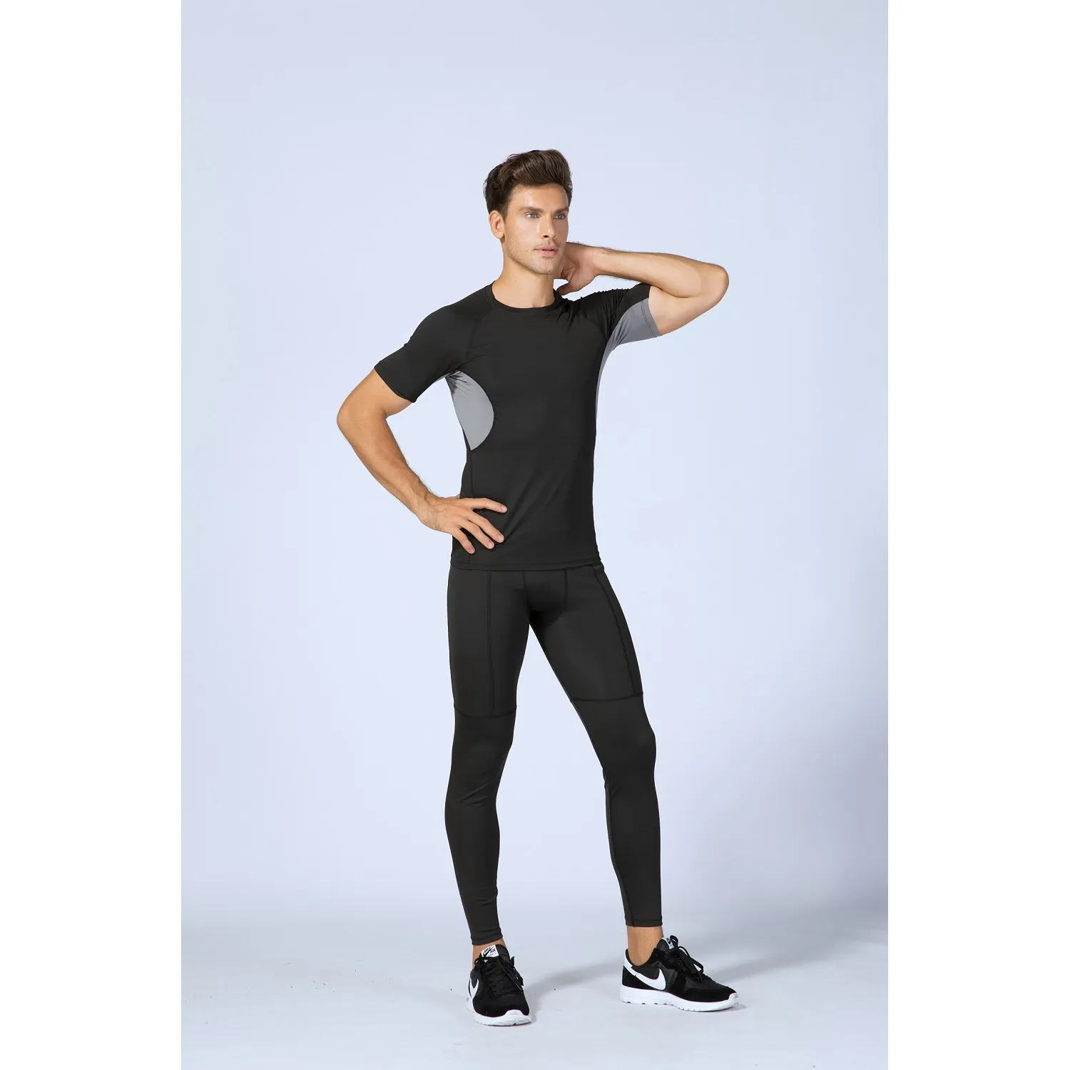 4 способа тянущийся фитнес мужской тренажерный зал Топ быстросохнущая футболка полиэстер