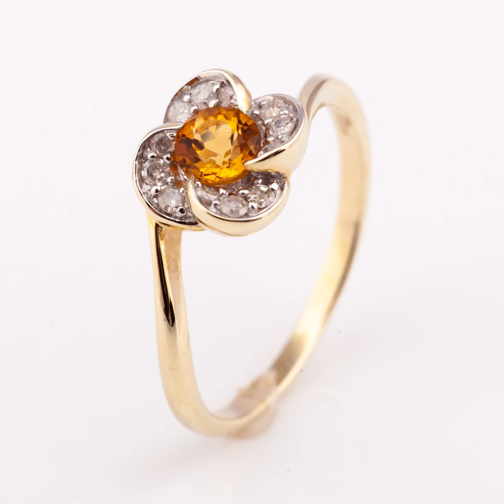 Цитрин и бриллиантовое кольцо 14K позолота Серебро 925 желанию можно украсить ювелирными изделиями для женщин модные изделия из Таиланда