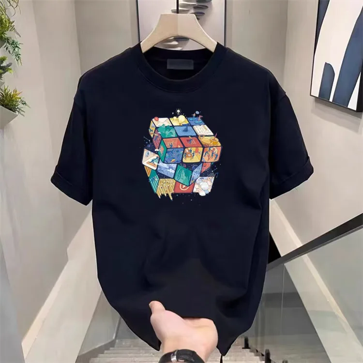 Модная летняя футболка с принтом Повседневная Мужская хлопковая коротким рукавом