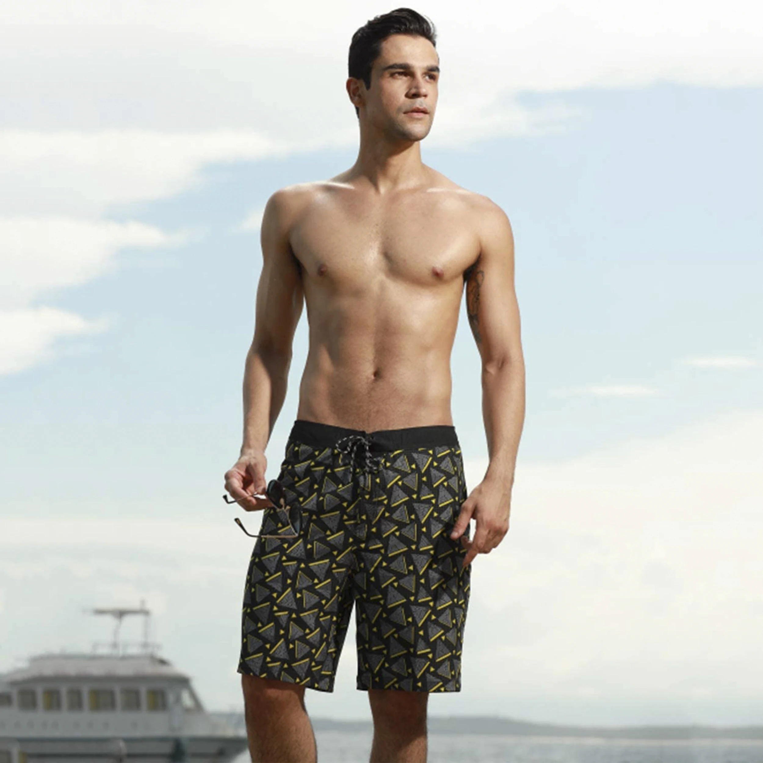 Мужские пляжные шорты, водостойкие эластичные шорты для плавания с карманами, шорты для серфинга