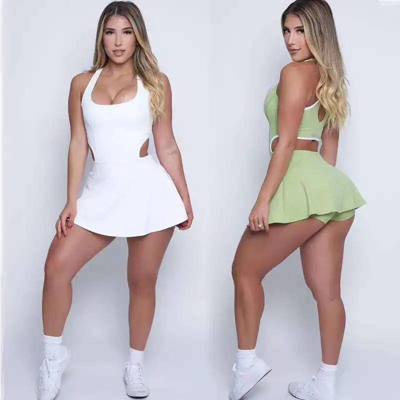 Оптовая продажа однотонные спортивные юбки женские теннисные платья для фитнеса быстросохнущее теннисное платье с нагрудным вкладышем