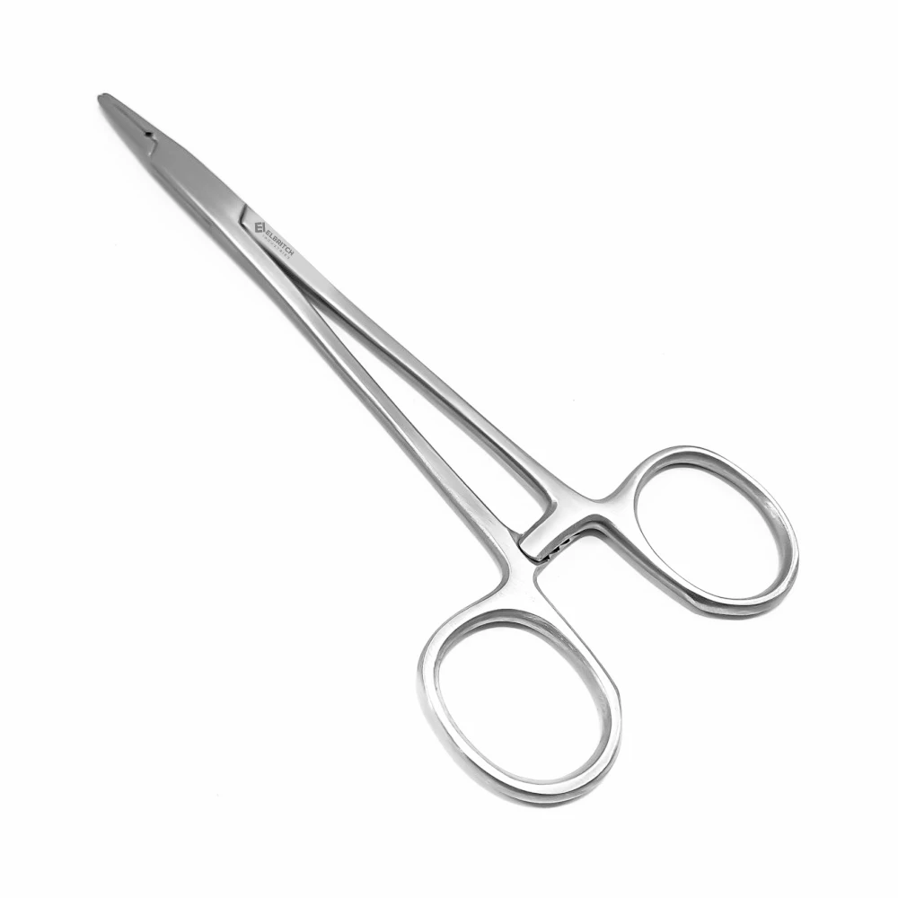 Halsey Needle Holders are finger ring forceps that assist surgeons in guiding and inserting suture needles.