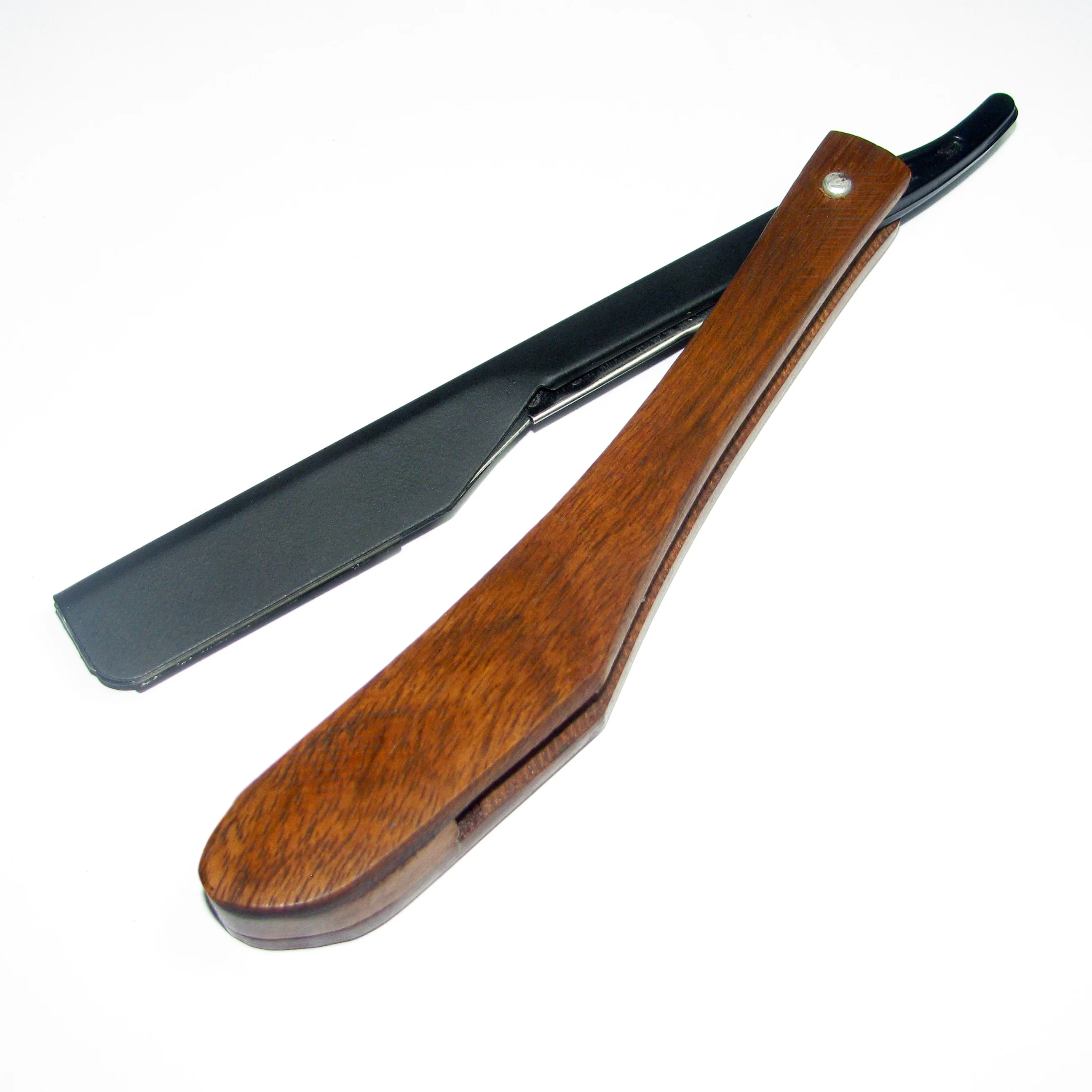 Barber Razors are made by hand, blade hardness is 60 degrees, with 0.5mm thick blade, sharp edge, a razor blade consists of the shaving knife and the hilt, which is in an open style, the razor includes sharp knife head and clip-shaped hilt with wooden handle. The blade head is made of high Stainless Steel, and a pinhole is fixed between the hilt and the blade head so that the cutter head has a free rotating space of more than 270 degrees which can easily trim the hair of a beard.