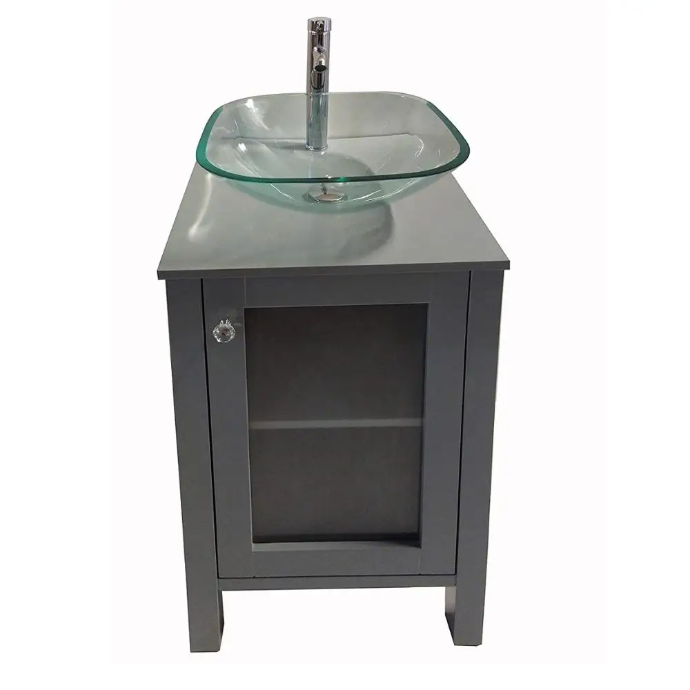 Серый столик с раковиной и шкафом с раковиной стеклянная тумба раковина YX-C7254
