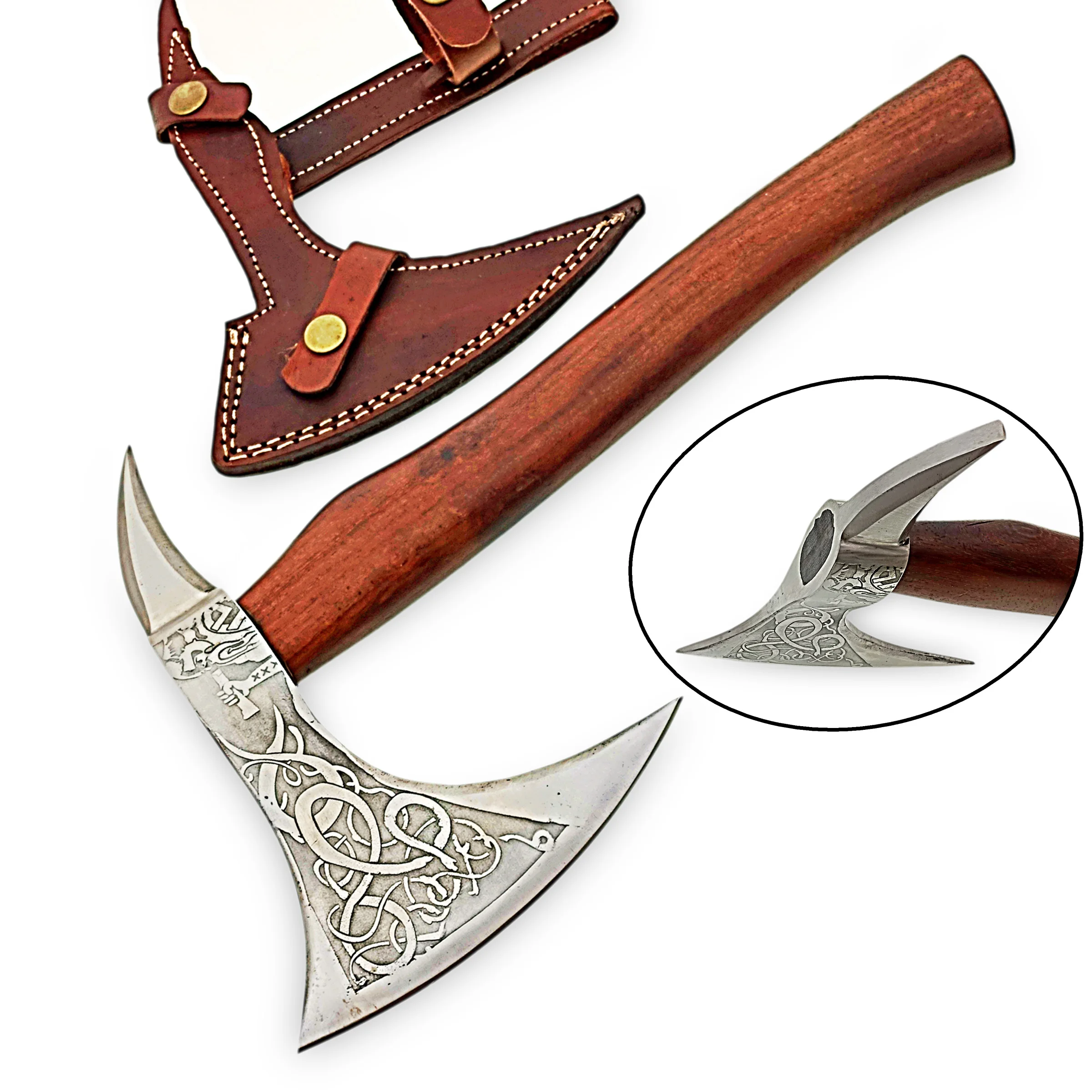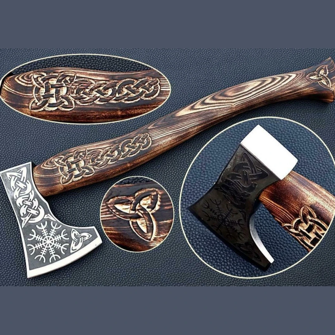 Steel Type: 1095 High Carbon Steel with Design Embossing on Axe Head |