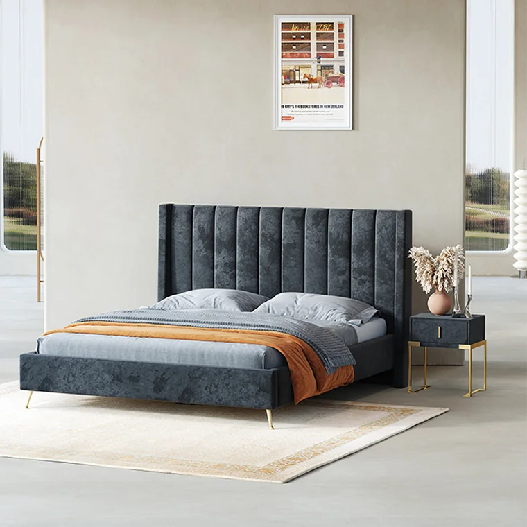 Модный дизайн, Современная королевская черная платформа, кровать с оборками