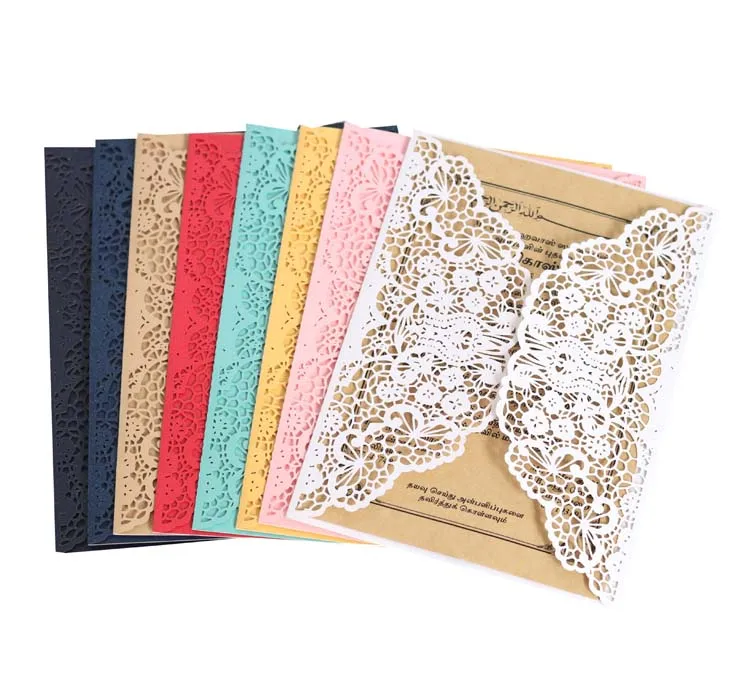 Оптовая продажа пустых праздничных поздравительных открыток с лазерной резкой, свадебных открыток для приглашений