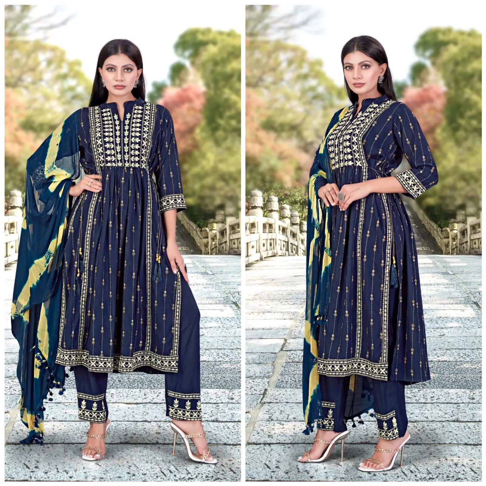 Женская Этническая одежда с Курти брюки для свадьбы вышивкой рабочий дизайн доступен по оптовой цене