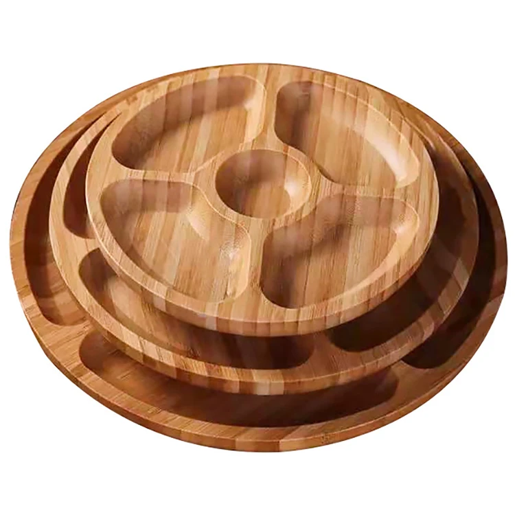 Круглые Фруктовые Тарелки из массива дерева platos de bambu, фруктовые орехи с отсеками