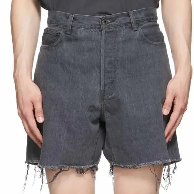 Оптовая продажа, 100% джинсовые брюки из чистого хлопка, джинсовые шорты, свободные мужские уличные шорты на молнии, хип-хоп, мешковатые джинсовые шорты