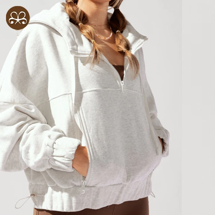 Женский однотонный топ на молнии с капюшоном