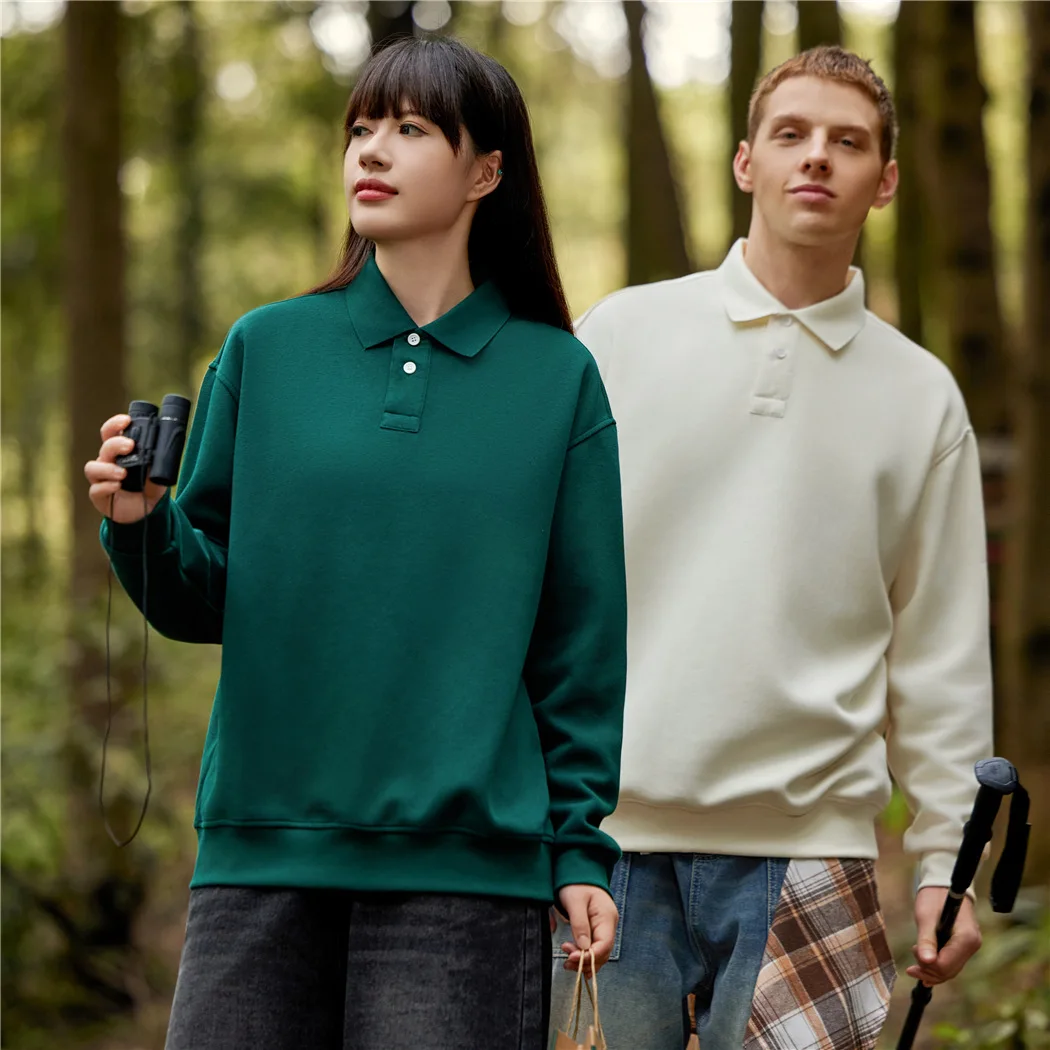 Пуловер-поло из композитного хлопка с длинным рукавом 350 г