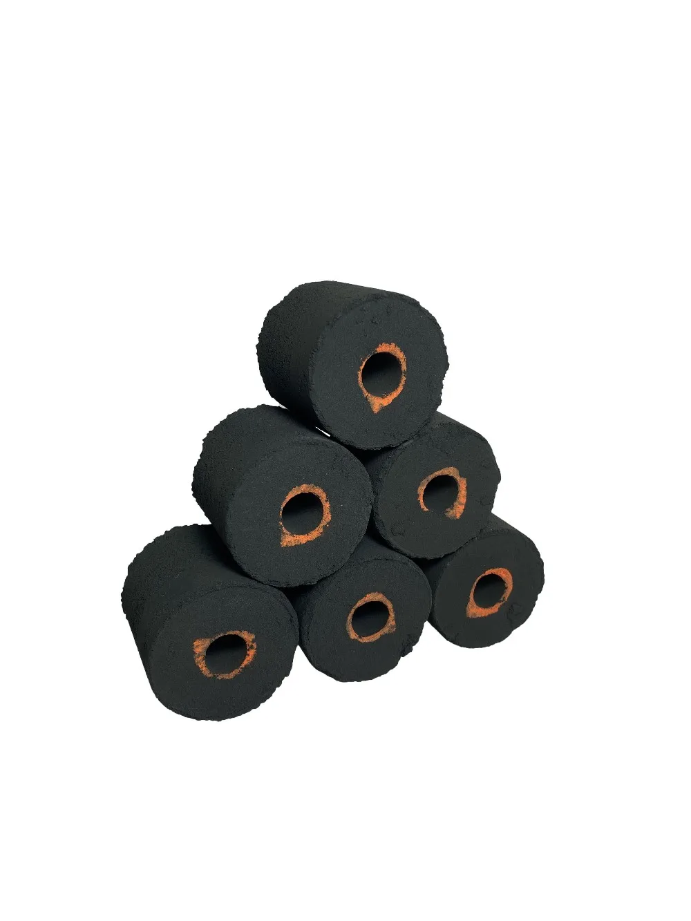 Compressed charcoal (activated charcoal) is made from charcoal powder, usually sawdust briquette charcoal and white charcoal powder. The powder is mix with a small number of safe adhesives such as starch, then the mixture is compressed with heat into a cylinder shape with a hollow core.