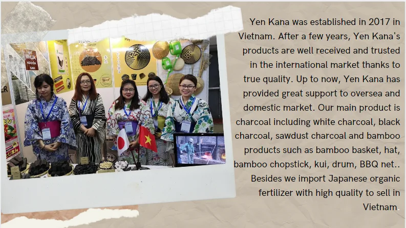 1, Yenkana is a professional company, exporting Japanese standard charcoal to markets all around the world.