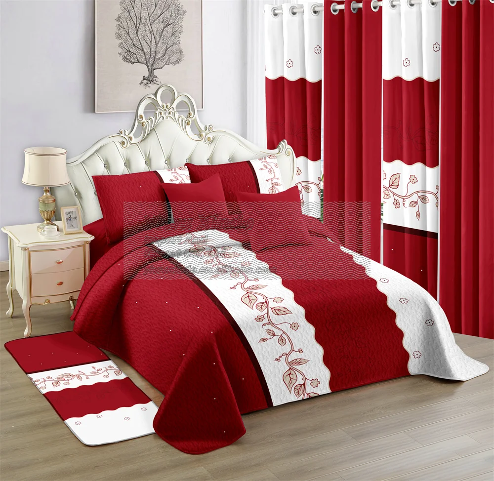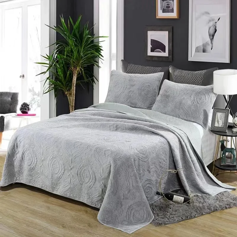 Оптовая продажа, роскошное мягкое легкое велюровое серое стеганое покрывало из 3 предметов с вышивкой, королевское одеяло