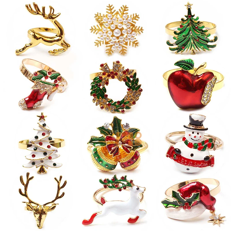 Рождественские кольца для салфеток изысканные настенные украшения рождественских праздников со стразами