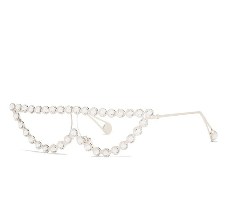 Элегантные Роскошные прозрачные линзы бриллиантовые солнцезащитные очки Женская оправа со стразами солнцезащитные очки кошачий глаз солнцезащитные очки с жемчугом