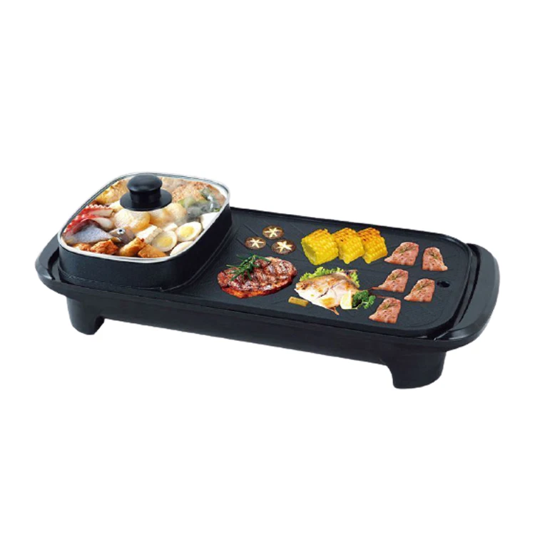 2 в 1 Многофункциональный горячий горшок и гриль для барбекю сковорода горячий горшок с грилем Крытый бездымный Shabu Корейский Электрический гриль для барбекю