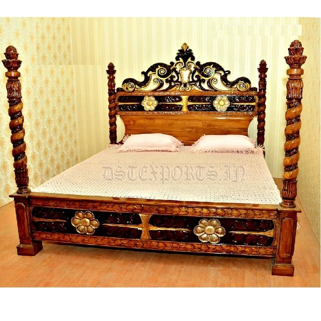 Первоклассная кровать из тикового дерева с четырьмя плакатами и ночной подставкой в античном стиле ручная резная деревянная стильная античной