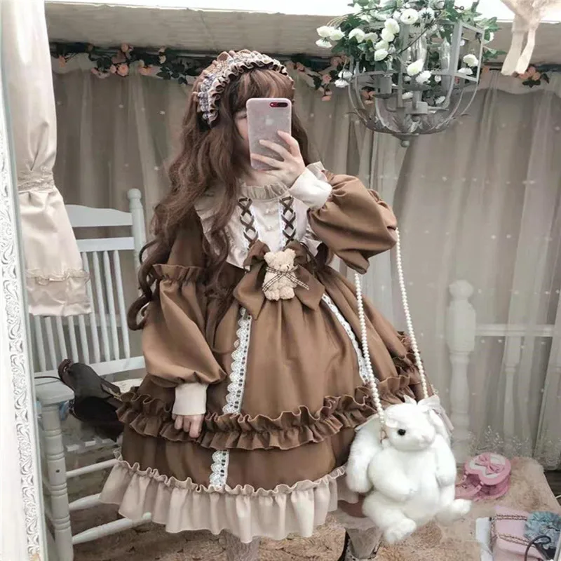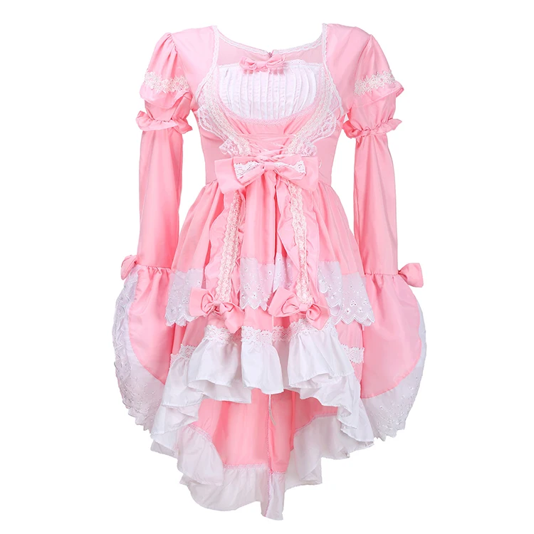 Милые женские туфли в стиле «Лолита» платье с оборкой и кружевной отделкой обувь в японском стиле Харадзюку с длинным рукавом кукла девочка платье феи Vestidos, для костюмированной вечеринки