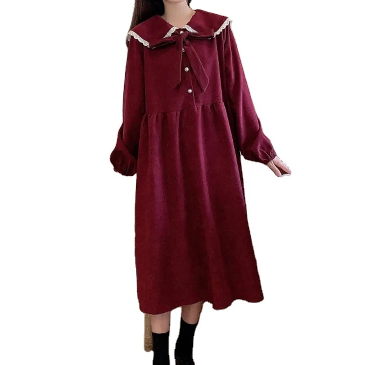 Женское вельветовое платье с длинным рукавом, милое платье принцессы во французском стиле с завышенной талией и тонким бантом, Осень-зима 2021