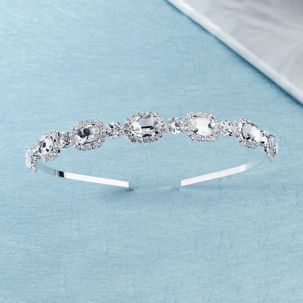 Модная вечерняя Свадебная повязка для волос с овальными стразами для невесты повязка на голову Серебряная маленькая корона с кристаллами и камнями для девочек