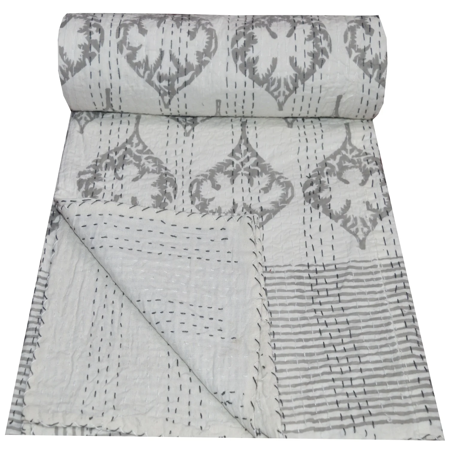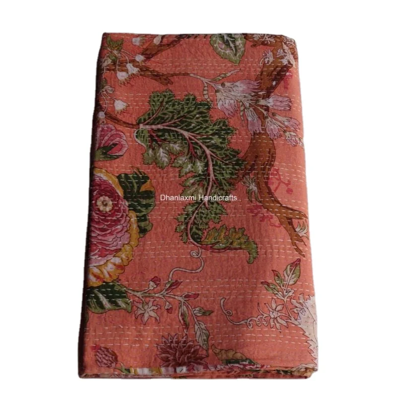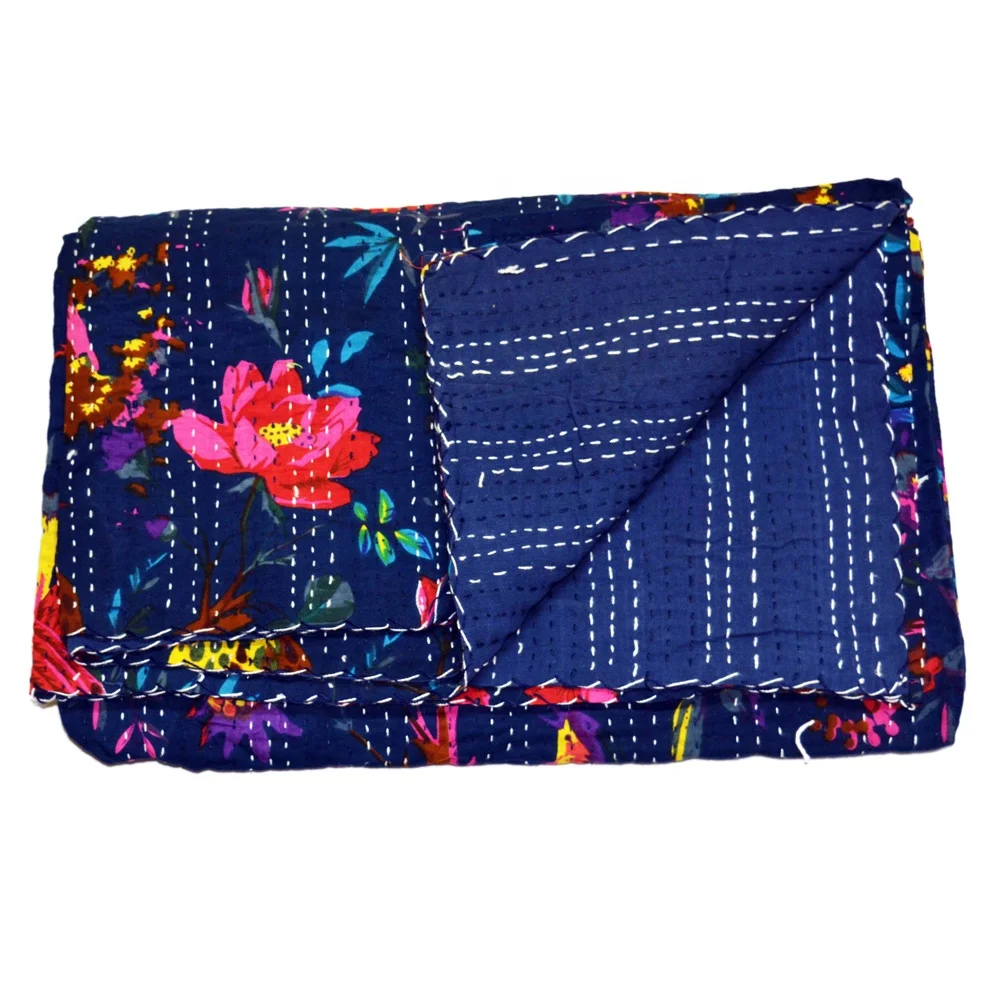 Индийское белое красивое цветочное покрывало Kantha, оптовая продажа, индийское Хлопковое одеяло Kantha ручной работы с цветочным принтом