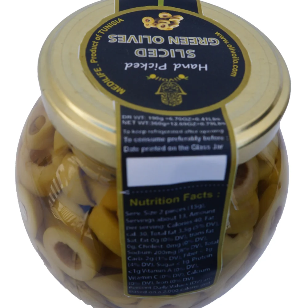 Зеленые оливки нарезанные 370 мл стеклянная банка