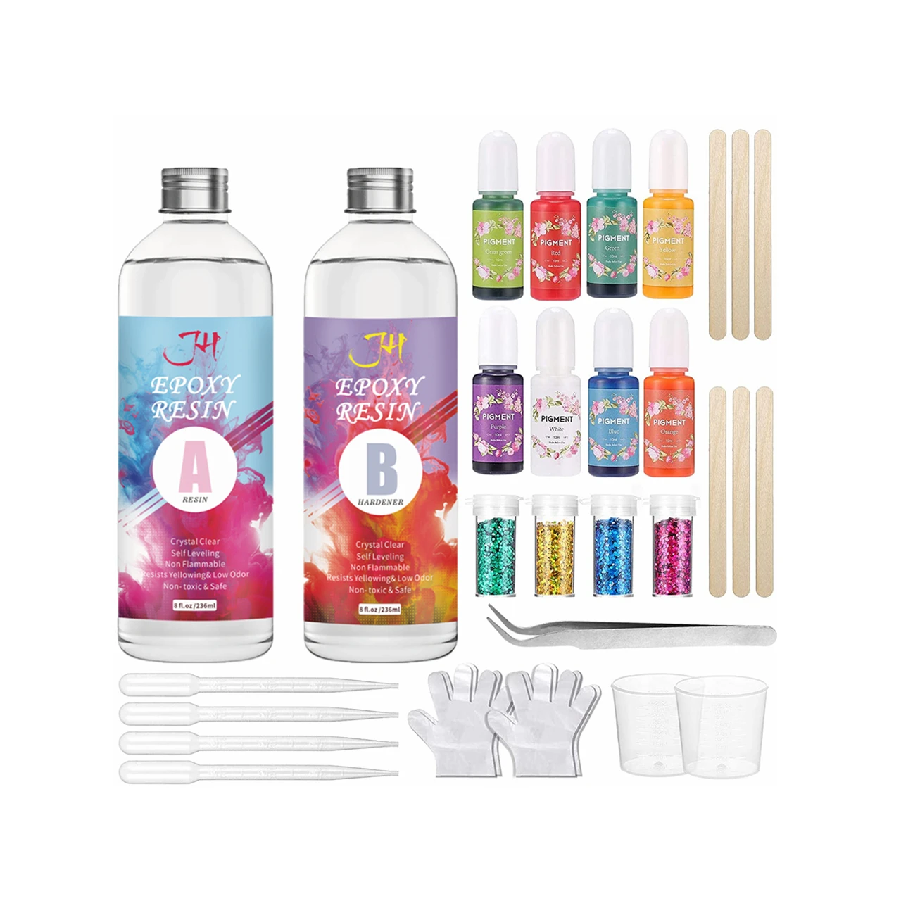 Высококачественная профессиональная эпоксидная смола-Индивидуальный полный комплект с палочками пигментами