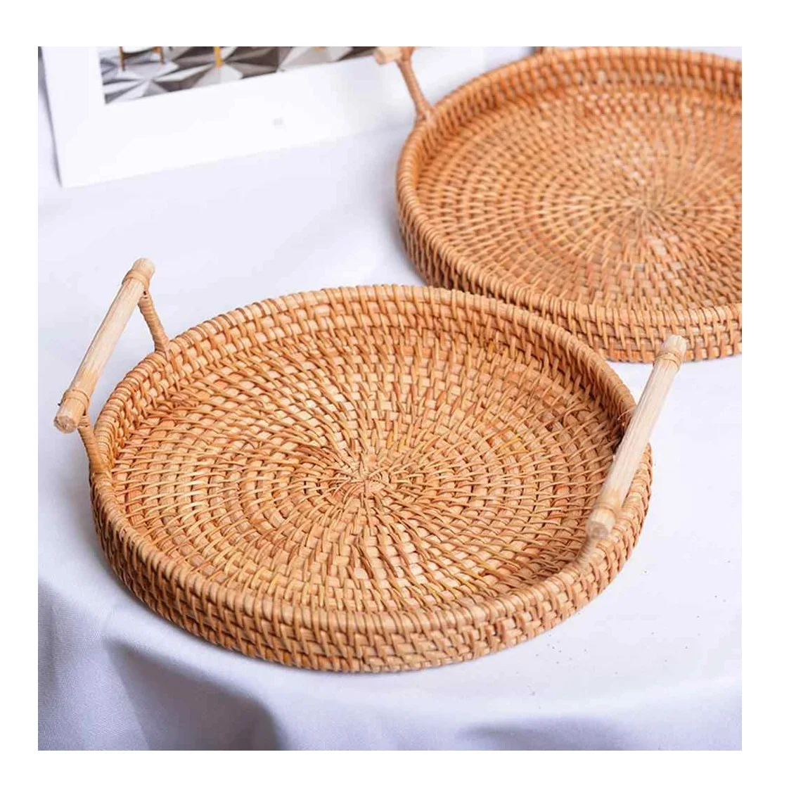 Оптовая продажа Сервировочные подносы со встроенными ручками плетеные корзины для хранения натуральных водяных гиацинтов с