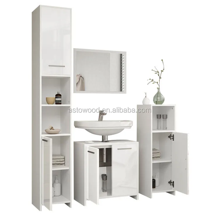 Тонкий белый шкаф для хранения в ванной комнате с выдвижным ящиком и верхним шкафом