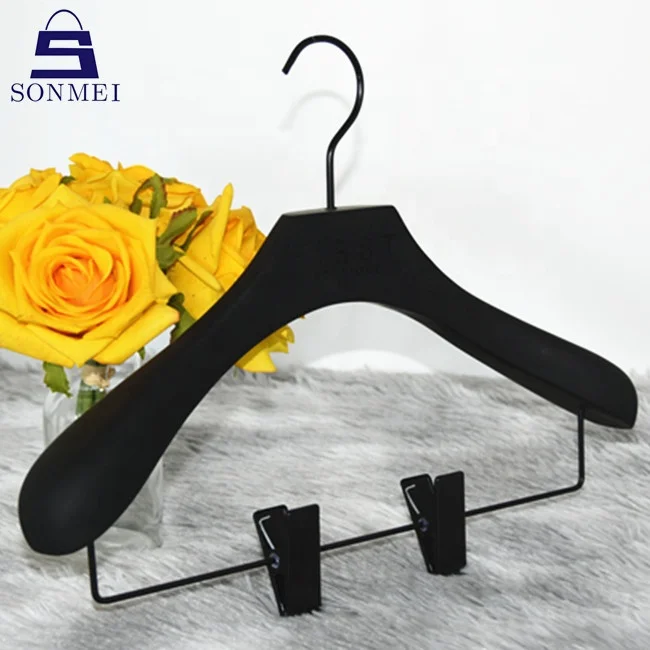 Nonslip clips hanger black rubber wooden skirt hanger with rubber