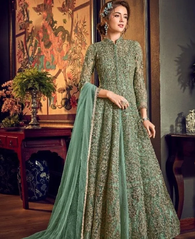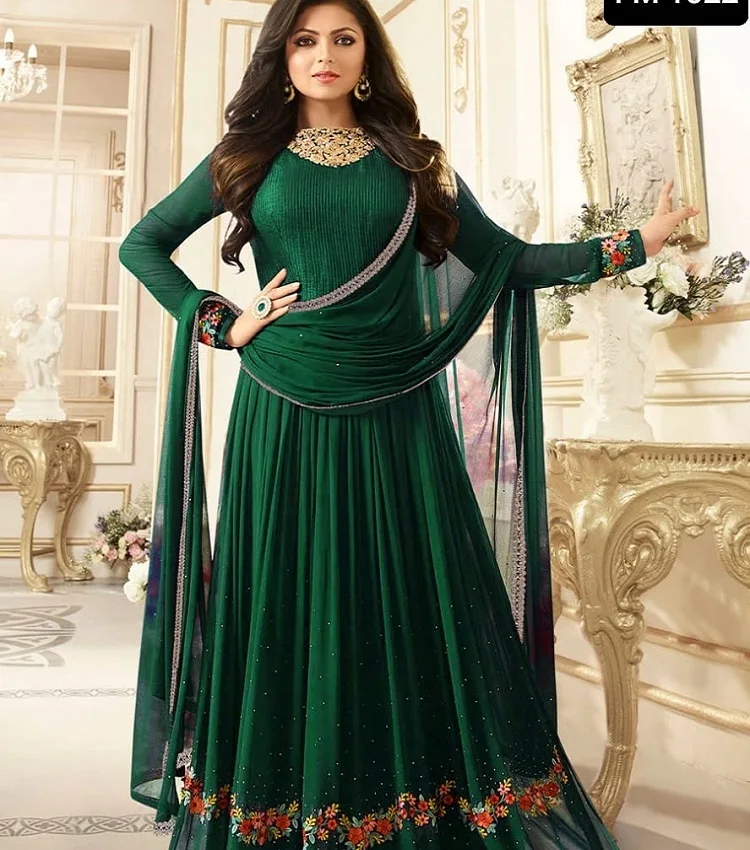 Тяжелый новейший дизайн вышивки для вечеринки стильное длинное платье вечернее в Пакистанском Стиле Анаркали Костюм дам с дупаттой