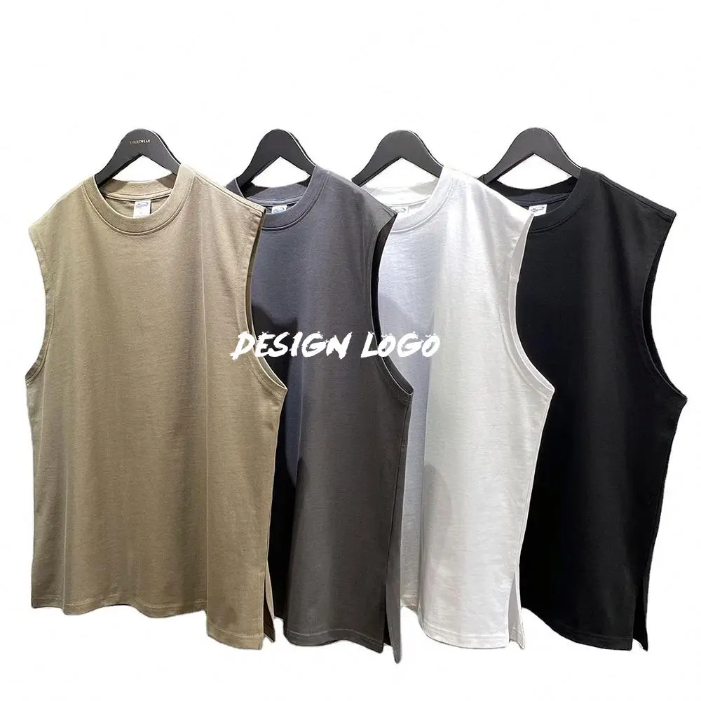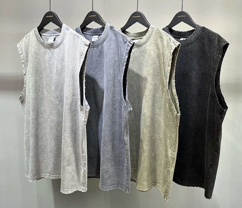 100% хлопковая уличная одежда 250 GSM с логотипом на заказ, плотный жилет без рукавов, Винтажная Майка с кислотной полоской